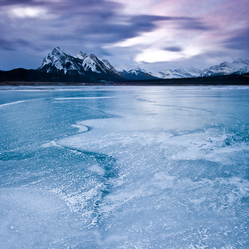 Colour version of "Bleak". Two landscape oriented shots merged together for this 1:1 aspect ratio. Photo taken at Abraham Lake, David Thompson Country, Alberta.