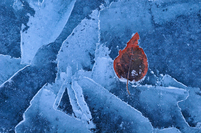 Frozen leaf on Abraham Lake, Alberta. I took this image before the sun came up.