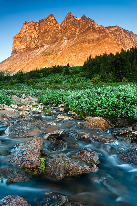 Sunrise at Tekarra Mountain on the Skyline Trail in Jasper, Alberta.